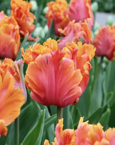 Umetniška nota, ki jo da posebna oblika tulipanov iz skupine papagajevk, z intenzivno oranžnimi in odtenki barve lososa ponudi razkošje, ki ga najdemo le pri "najžlahtnejših" sortah cvetlic. Izjemni.